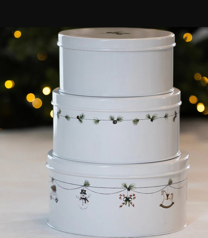 Perfekt til julekaker og hygge — nostalgisk kakeboks med koselig julemotiv i metall.