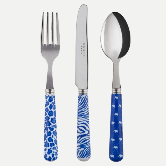 settet består av en liten skje ,en liten gaffel og en liten kniv. Med fine farger og glade motiv blir dette raskt en favoritt for barnet.